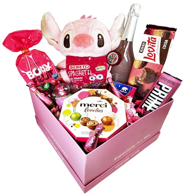 شامل: نوشیدنی فوگوسو ۷۵۰ میل، پاستیل اسپاگتی توت فرنگی ببتو، شکلات مرسی کادویی، کوکی شکلاتی روشن، نوشیدنی پرایم توت فرنگی، پاستیل شکری بانی فروت، آدامس بیگ بر توت فرنگی، به همراه عروسک استیج و گوی چراغ دار و المان های کادویی، (رنگ باکس ممکن متغیر)