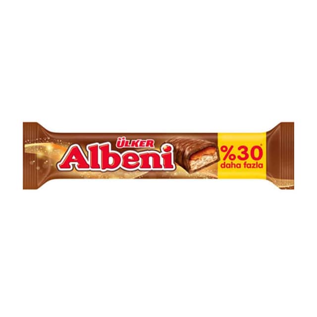 52 گرم، با مغز کارامل و بیسکوئیت، به همراه روکش شکلات شیری لذیذ و خوشمزه، دارای 30% حجم بیشتر از شکلات آلبنی کوچک، محصول کشور ترکیه